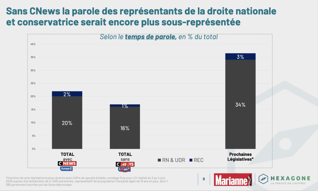 Sans CNews-Europe 1, la parole des représentants de la droite nationale et conservatrice serait encore plus sous-représentée