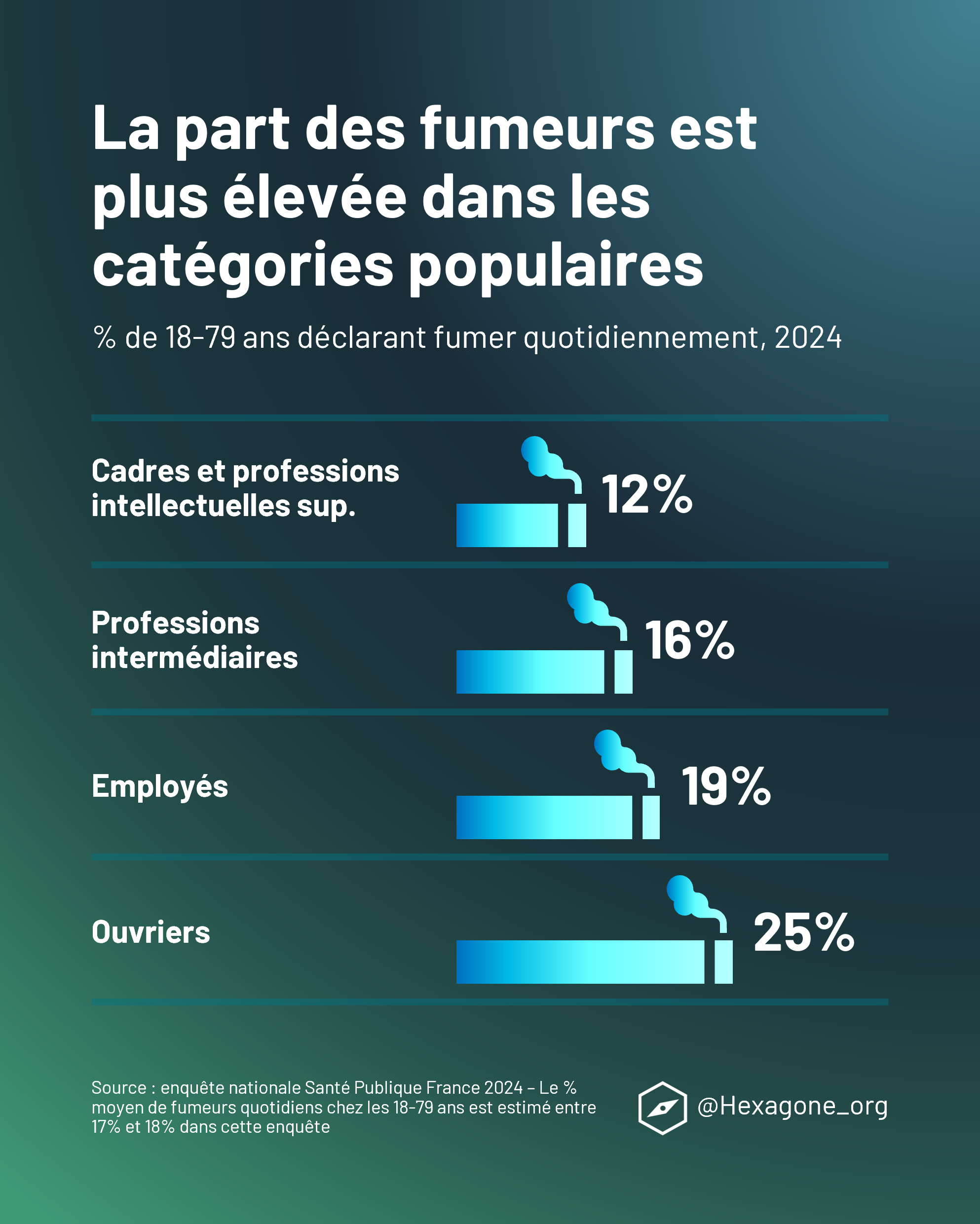 Cette fiscalité dissuasive s’accompagne d’un changement dans les comportements. Même si la taxation du tabac n’en est pas forcément la seule cause, on observe un recul de la consommation ces dernières années : la part de répondants déclarant fumer quotidiennement a chuté de 25,5% en 2020 à 17-18% en 2024.