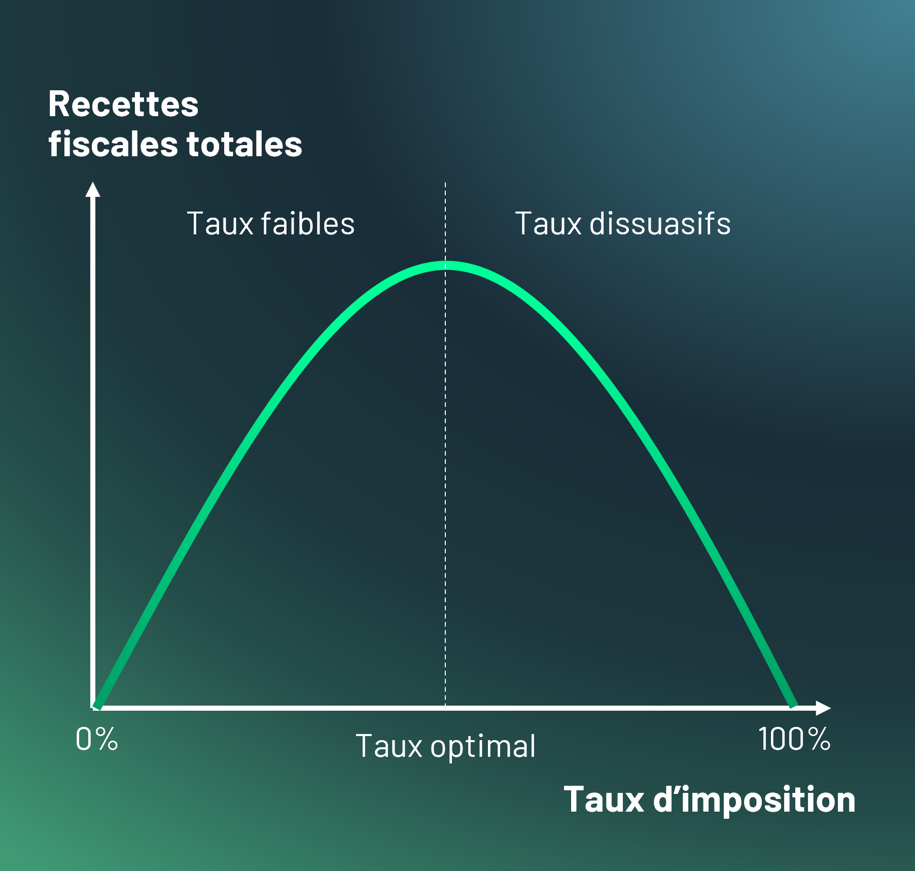 Tout cela renvoie à la fameuse « courbe de Laffer » qui montre schématiquement qu’un taux d’imposition trop élevé fait baisser les recettes fiscales. Un exemple récent en France a même montré qu’une baisse du taux d’imposition n’entraînait pas nécessairement de baisse des recettes fiscales : la fameuse « flat tax » de 30% sur les revenus du capital, introduite en 2018, n’a pas entraîné de baisse de recettes, alors que son coût était estimé à environ 1 à 2 Milliards d’euros.