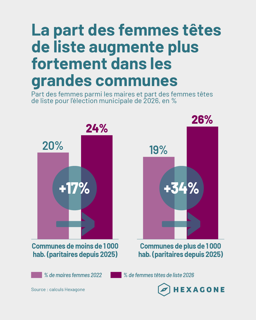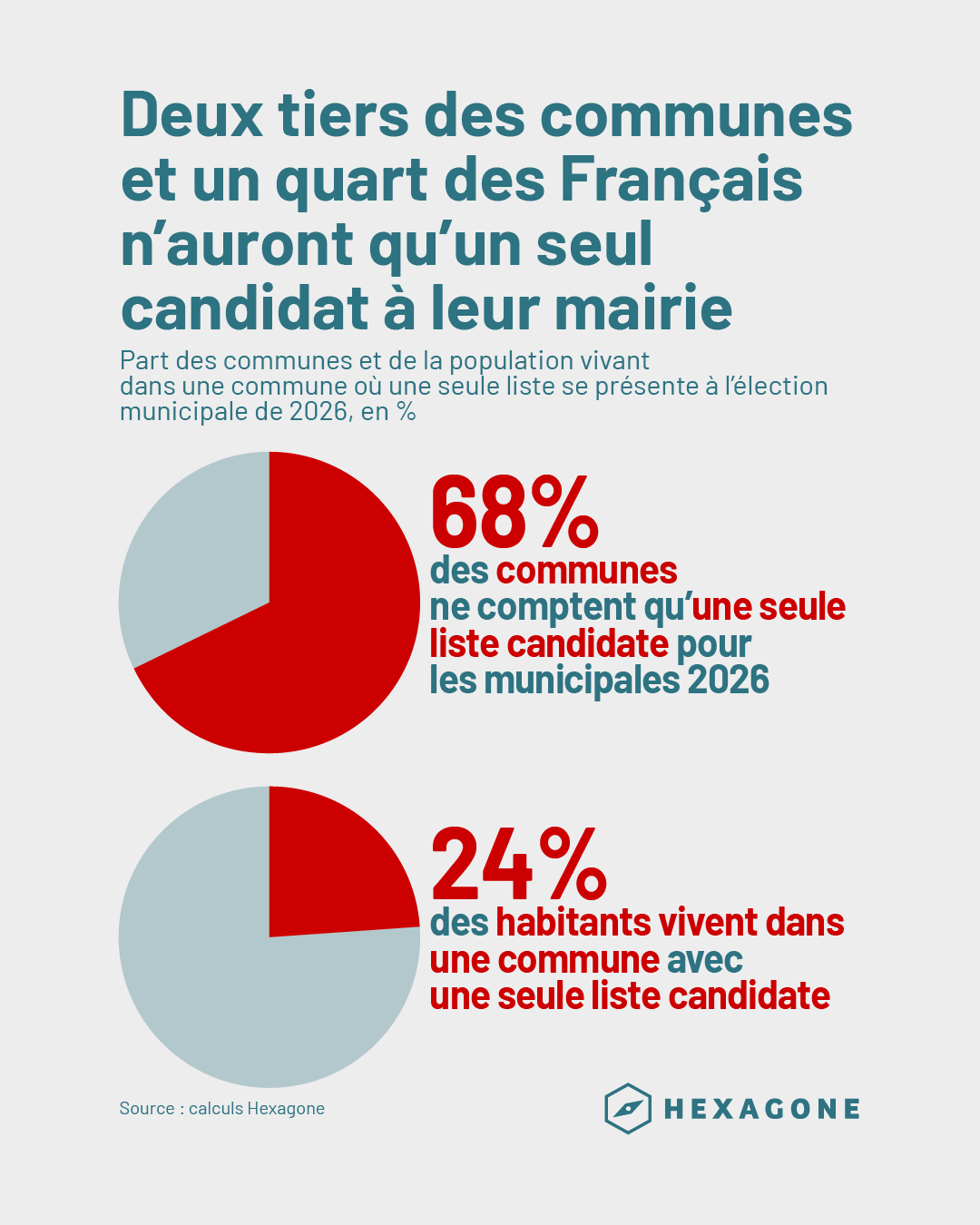 Officiellement, l’objectif est clair : faire progresser la parité là où elle est historiquement plus faible. Le résultat, lui, est inquiétant pour la démocratie. Trouver autant de femmes que d’hommes pour constituer une liste relève déjà de l’exploit pour une seule liste, mais encore plus pour une seconde ou une troisième dans les communes avec quelques centaines d’habitants. Par conséquent, dans la plupart des petites communes, les électeurs n’auront dans l’isoloir aucun choix entre plusieurs listes concurrentes. Cette réforme pose donc une question politique simple : que vaut une élection quand elle devient, dans une large partie du territoire, un vote sans choix ? Les premières données de candidatures déposées pour 2026 permettent à l’observatoire Hexagone de mettre en valeur ce dilemme : le progrès arithmétique de la parité risque d’assécher la concurrence démocratique dans des milliers de communes.